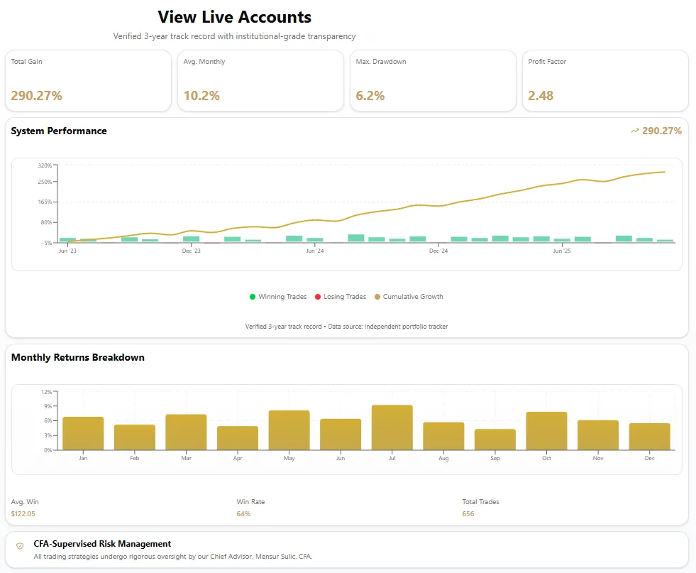 Your capital stays in your own U.S. brokerage account. Our AI executes trades automatically under strict CFA-led risk oversight, delivering disciplined, data-driven growth without you lifting a finger.